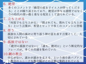 そして、この信仰告白たちを教会員以外の方々からも「好き」と言ってもらえている。ありがたいことだなぁ、とアンケートをまとめながら、しみじみと思いました。